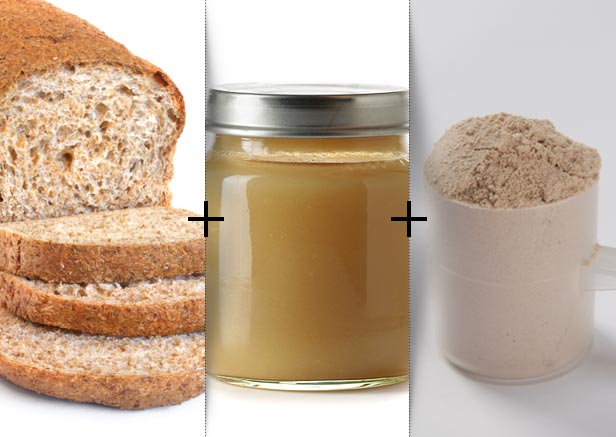 - Mix protein powder with enough water to make a thick consistency. Add stevia and almond butter. Toast bread. Spread mixture on toast.