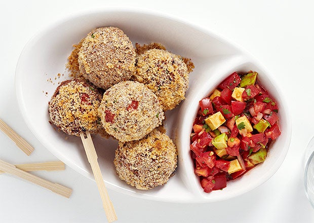 Bake the bean bites until heated through and the breadcrumbs are golden brown, about 20 minutes. Add avocado to the remaining tomato mixture and stir to make a salsa. Serve the salsa with the bean bites.