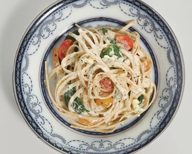 Chicken, Tomatoes And Linguine In Creamy Gorgonzola Sauce