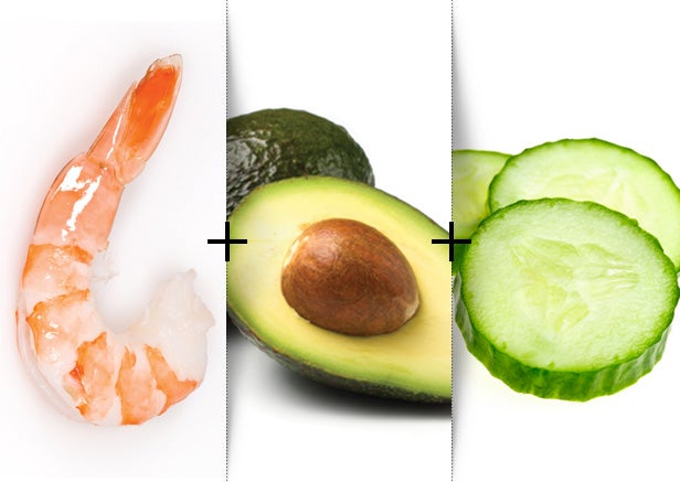 Slice the avocados lengthwise and remove the pits. Scoop out the avocado, leaving some around the edges. Dice the meat of one avocado and add the seafood mixture along with the chopped cilantro. Slice the meat from the second avocado and use to garnish plates.