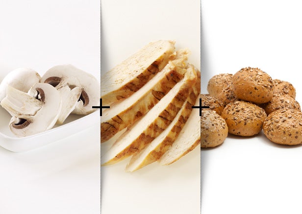 Brush both sides of the chicken with marinade and sprinkle it with mesquite seasoning. Turn the grill on high, and cook for three minutes. Now, turn the chicken over, cover it with foil, and reduce the heat to medium-high. Continue to turn it (every two to three minutes), and gradually reduce the heat. Keep turning it until the chicken is almost done. While the chicken is cooking, spray a medium-sized pan with cooking spray, and heat it on high. Add in the mushrooms, drizzle in the soy sauce. Stir and cover. Continue to stir frequently, and reduce the heat to medium. Remove mushrooms when they are tender. Next, place the cheese on the bun and put it into the toaster oven. Heat it until the cheese melts. Finally, place the chicken on the bun, smother it with the mushrooms, and serve.