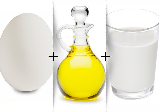 Mix milk and eggs and pour into pan.