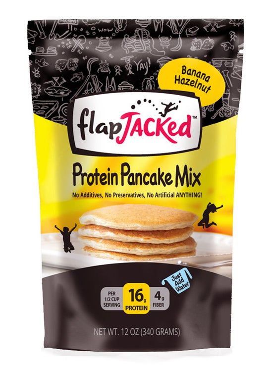 Whey protein gives each pancake a healthy dose of protein while hazelnut flour adds great nutty flavor.