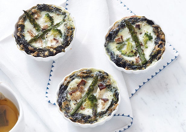 Remove spinach from heat and add to bowl, including any liquid from cooking process. Pat spinach crust mixture into pie dish to cover the entire dish, including the sides, evenly. Bake for 15 minutes.
