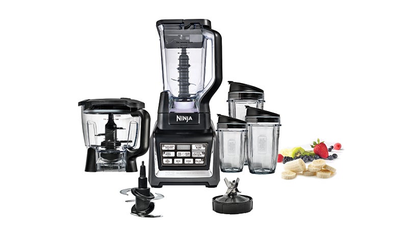 This appliance plays triple duty, acting as blender, food prep/processor and nutrient extraction system. The 1500-watt base comes with 3 different-sized cups, 2 sets of blades, a 72-ounce blending pitcher, sip-and-seal lids and a 5-year warranty.